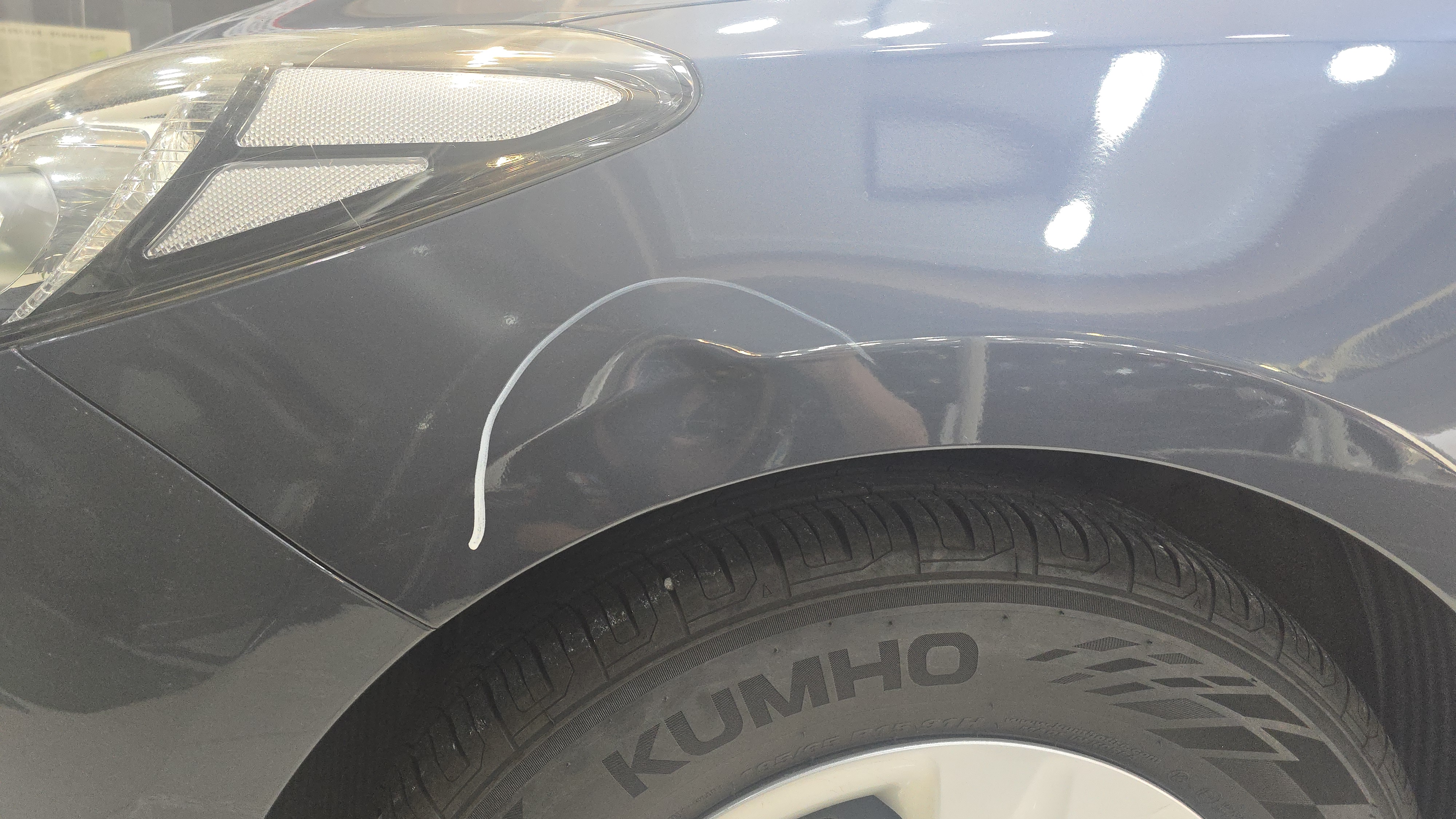 k3 운전석앞펜더 쉽지 않은 각진 부위 찌그러짐